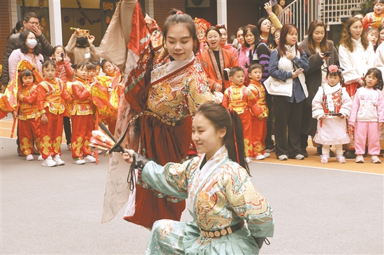 過去的一個星期,廣州市不少幼兒園呈現出紅紅火火的熱鬧景象。開學日接連元宵節,園方將廣府廟會搬進園內,給孩子們打造了一場文化氣息濃郁的開年派對。記者留意到,非遺已成為各大嘉年華的亮點,“打破圍墻”、將外部資源請進幼兒園也成為新氣象。