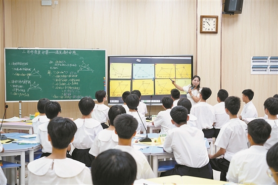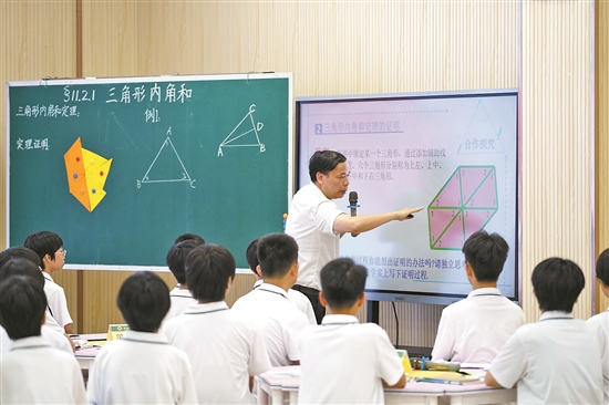 6月19日上午,在湛江市寸金培才學校,廣東省教育研究院黨委委員、教學教材研究室黨支部書記吳有昌作為幫扶專家,與湛江市寸金培才學校的數(shù)學老師何敏霞上了一節(jié)《三角形的內(nèi)角和》的接力課。來自湛江市各縣市區(qū)的150多位初中數(shù)學教師現(xiàn)場聆聽了專家授課和點評。