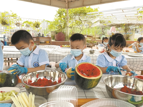 蠔是湛江的一張海鮮美食名片,今天它成為孩子們食育活動的烹飪主菜。記者在現(xiàn)場看到,孩子們分工合作、有條不紊地在萌小廚里忙碌著,有的做蒜蓉炒蠔,有的做芝士烤蠔,頓時香氣四溢。看著孩子們滿意的笑容,能感受到勞動教育帶給孩子們的不僅是生活技能的提升,更多的是動手操作、親身體驗的滿足感。