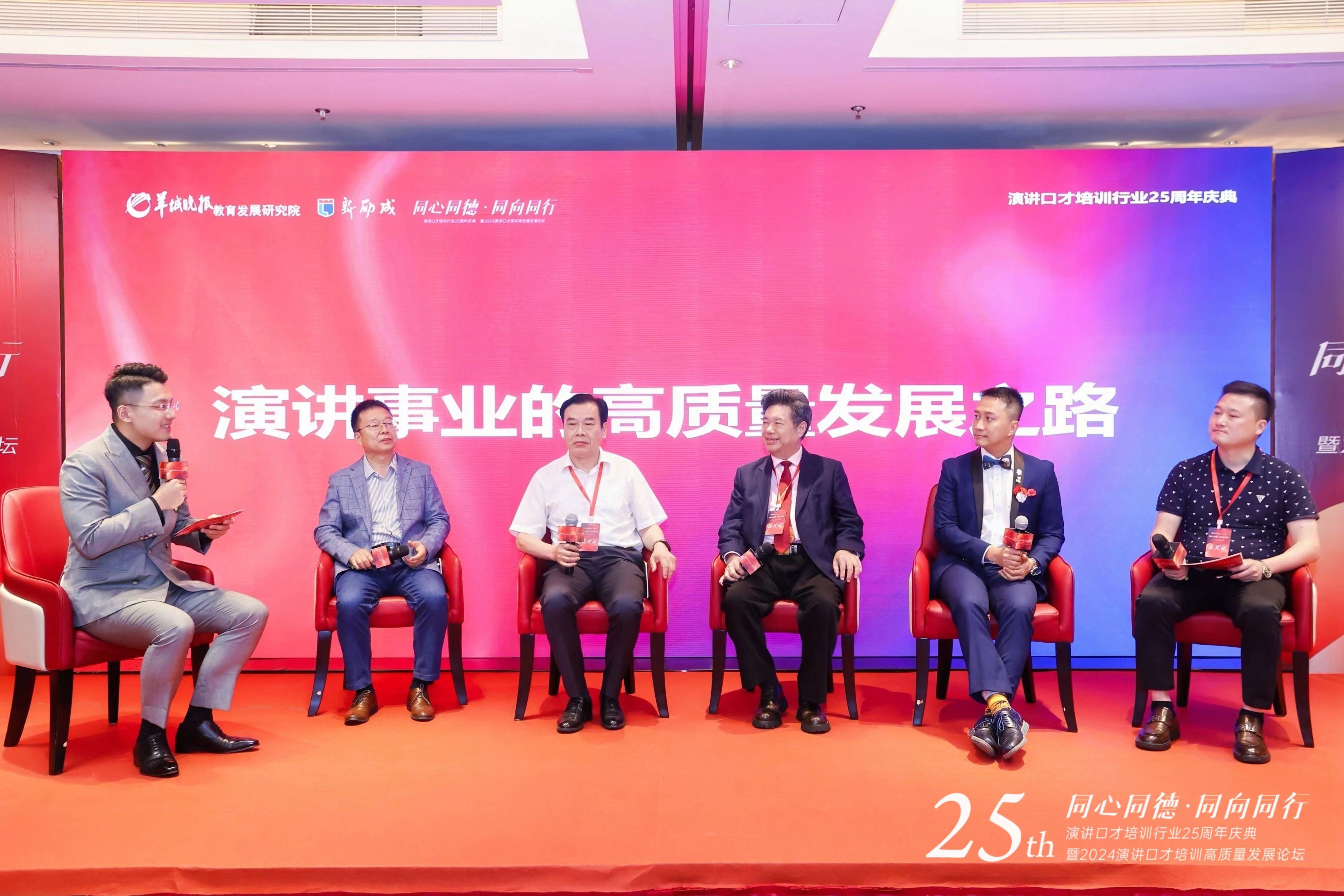 其中,《演講事業的高質量發展之路》議題聚焦了行業發展的核心問題。山東省演講學會會長武傳濤,河北省演講與口才學研究會執行會長王俊生,廣東演講學會常務副會長鄭宏彪,澳門演講家協會創會會長黎俊文,貴州省演講研究會常務副會長鮑明,共同探討如何推動演講口才培訓行業邁向更高質量的發展。他們認為,演講口才培訓行業的高質量發展需要注重內容的創新和技能的改進。隨著社會的不斷發展,人們對于演講口才的需求也在不斷變化,因此,應不斷更新教學內容,以滿足學員的實際需求。