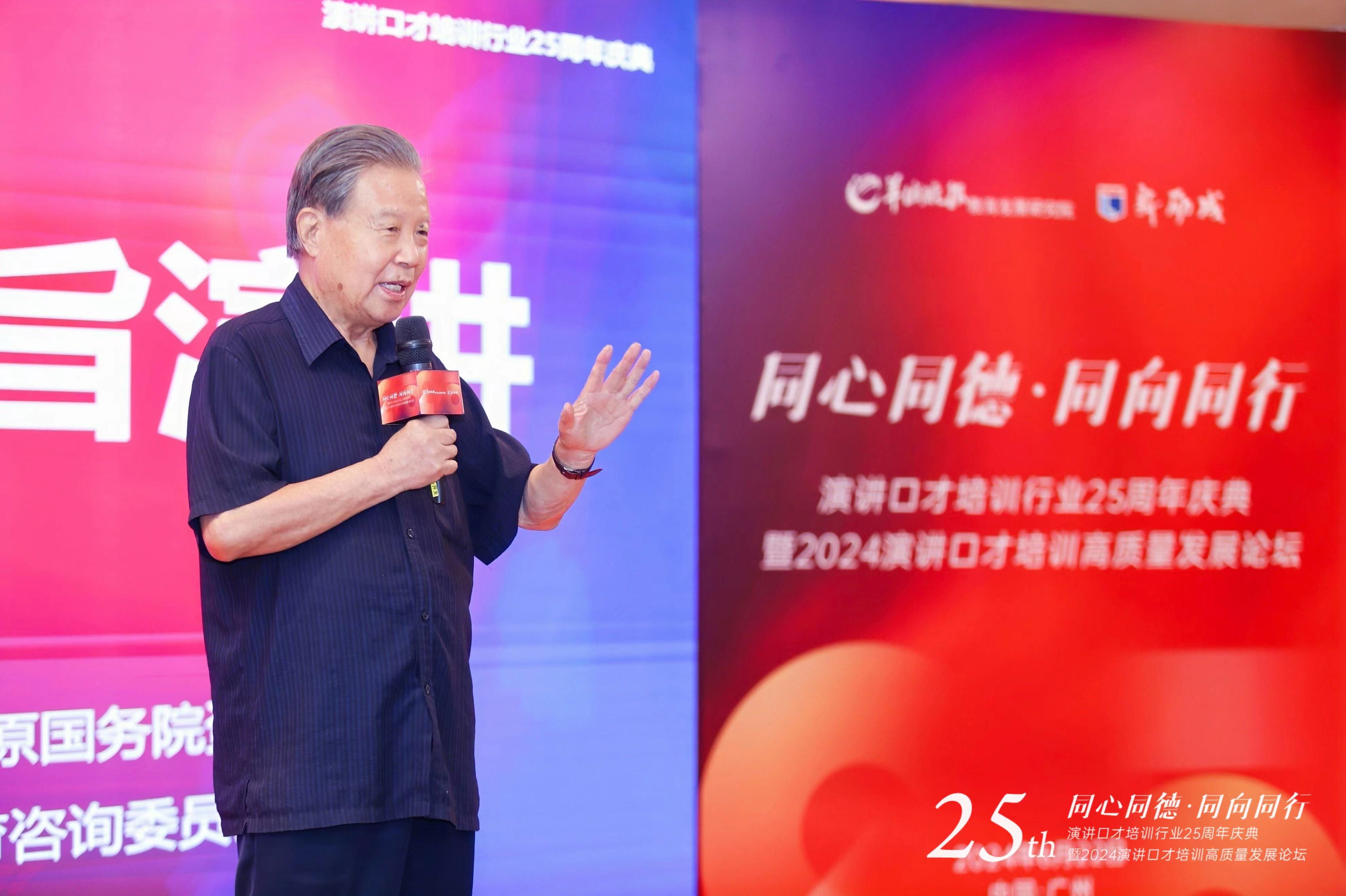 “我今年87歲,站在講臺上演講已經80年了!演講需要練就童子功,講真話,講實話……“2024年6月22日,由羊城晚報教育發展研究院和新勵成教育科技股份有限公司聯合舉辦的“同心同德·同向同行”演講口才培訓行業25周年慶典暨2024演講口才培訓高質量發展論壇在廣州舉行。著名經濟學家、科學家、國務院原資深參事、全國政協第九屆、第十屆常委、國家教育咨詢委員會委員任玉嶺應邀到現場作主旨分享,現場還有來自全國各地演講口才行業領軍人物、業界翹楚和權威學者等,圍繞數字化創新如何賦能行業破局,AI與演講口才培訓如何結合與創新,以及未來演講口才培訓講師的職業生涯發展等展開深入探討。