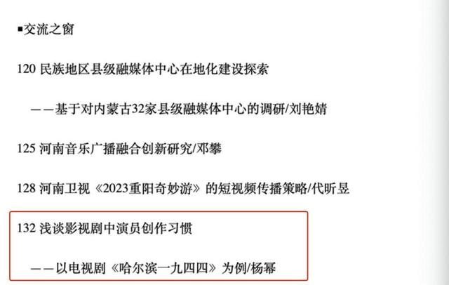 近日,知名影視演員楊冪在C刊擴展版發表文章,該話題登上熱搜。國家廣電總局主管、中國廣播電視社會組織聯合會主辦的學術期刊《中國廣播電視學刊》(CSSCI擴展版、北大中文核心)在2024年第六期發表了一篇楊冪所寫的《淺談影視劇中演員創作習慣——以電視劇<哈爾濱一九四四>為例》的文章。