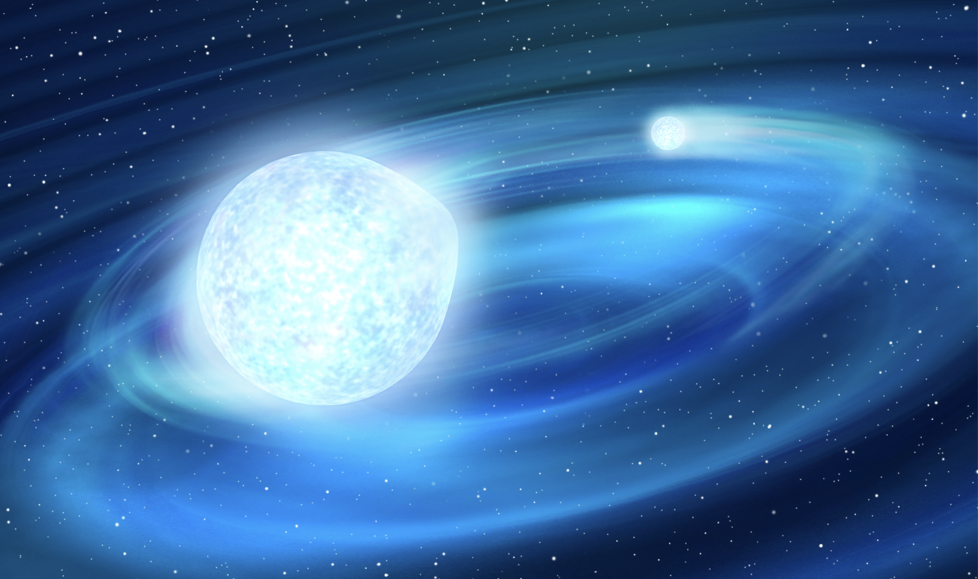 圖為北京天文館藝術家喻京川繪制的TMTS J0526雙星系統,較大的為熱亞矮星,遠處較小的為其白矮星伴星。清華大學物理系王曉鋒教授課題組供圖