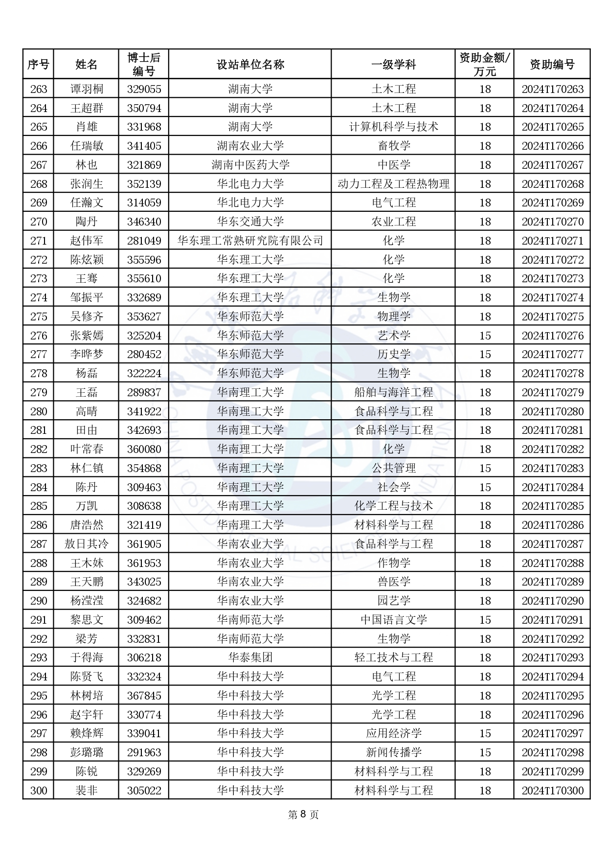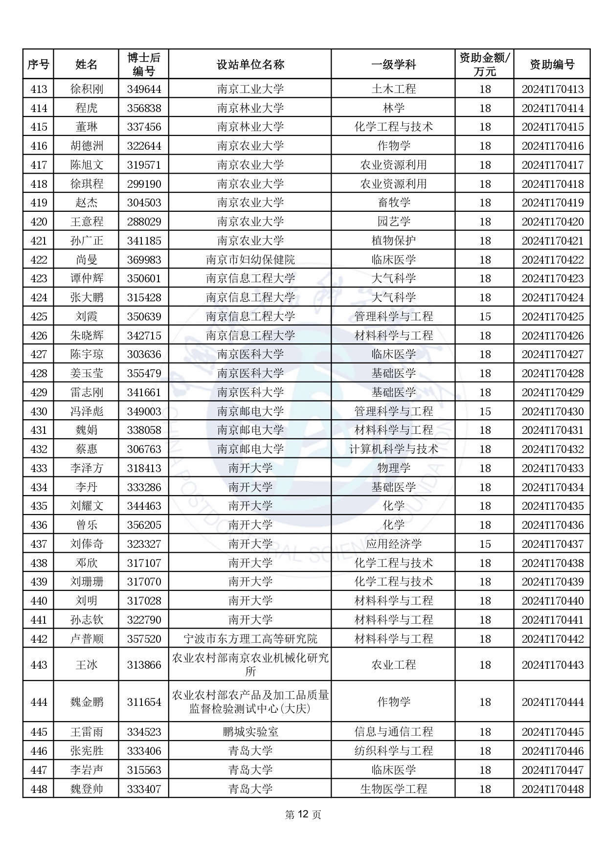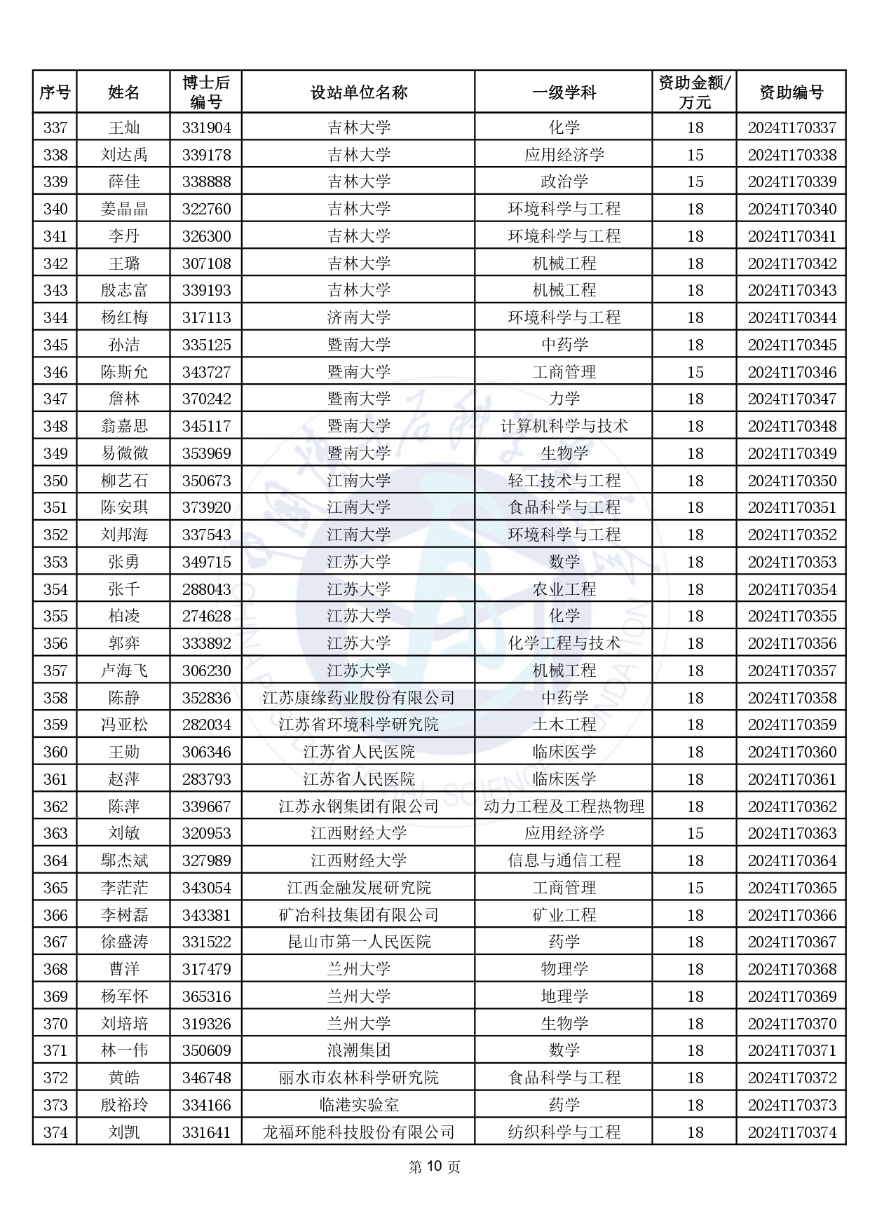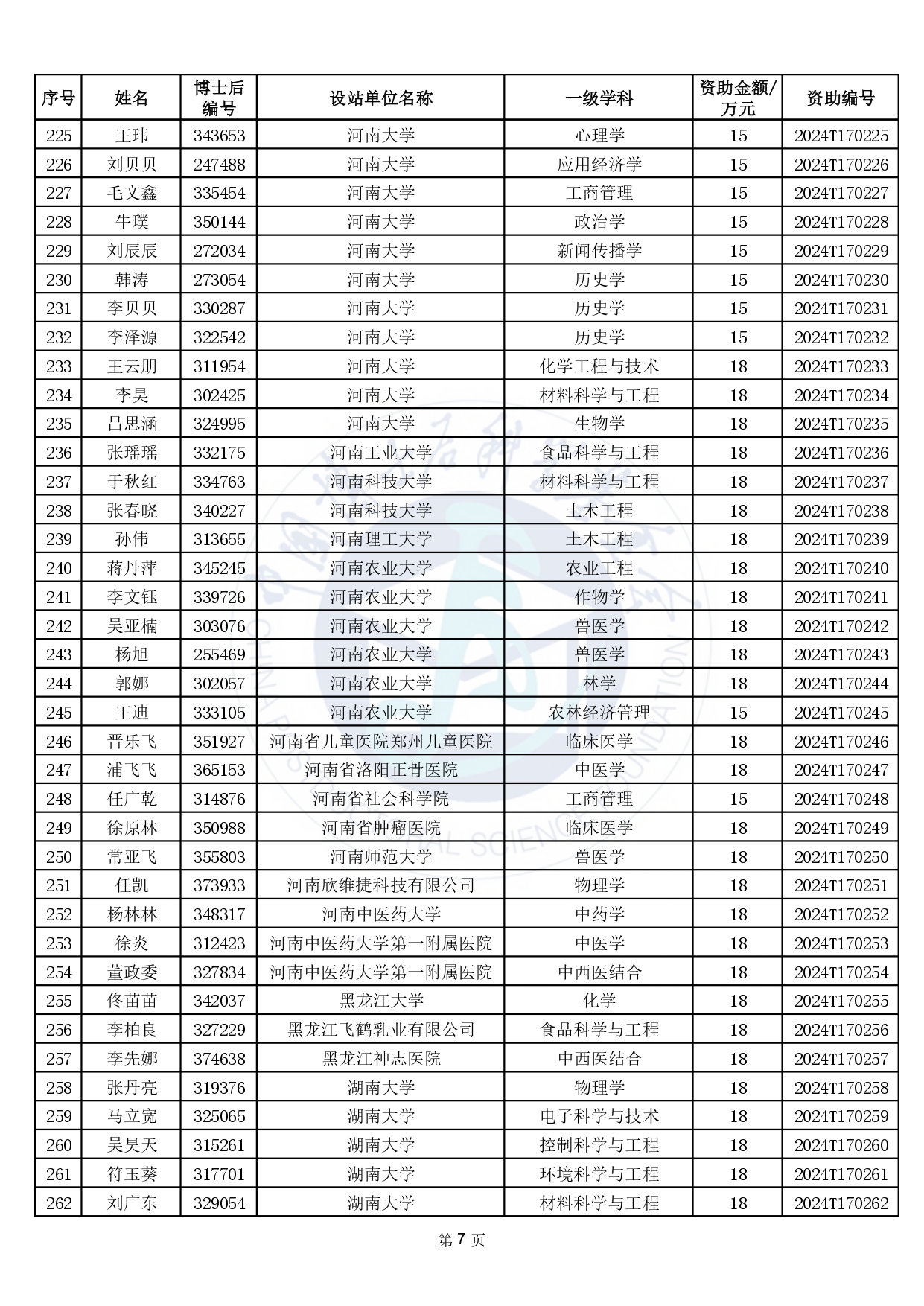 關(guān)于公布2024年度中國博士后科學(xué)基金第17批特別資助獲資助人員名單的通知